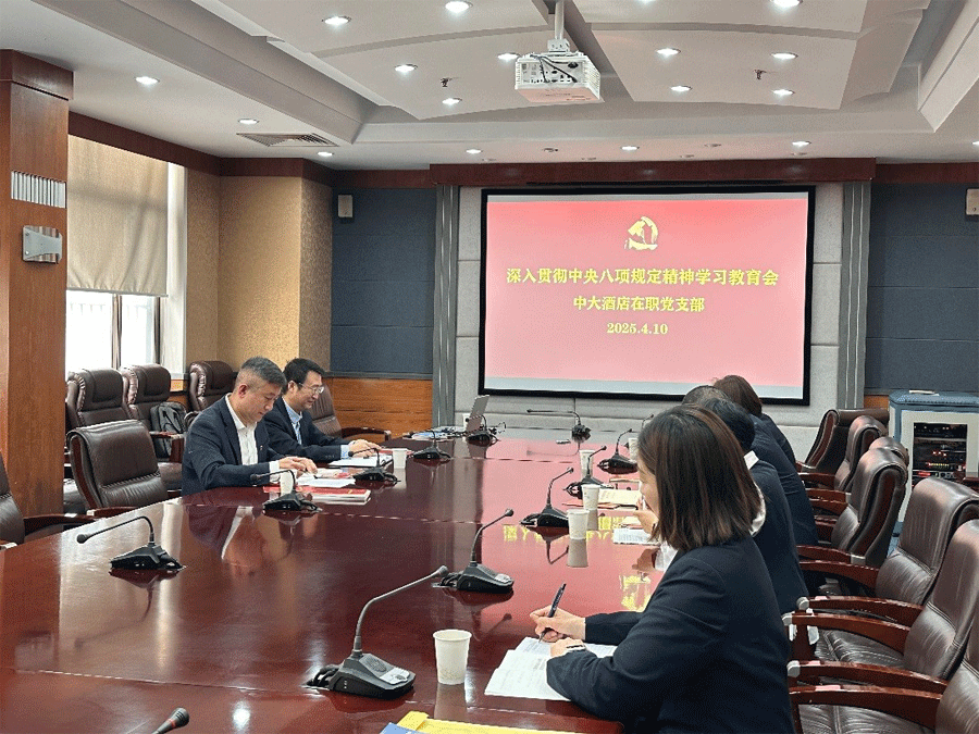 為深入貫徹落實黨的關于全面從嚴治黨的重要部署,切實將中央八項規定精神轉化為酒店高質量發展的行動指南,中大酒店公司按照資產公司黨委要求,于4月10日上午在職黨支部全體黨員召開深入貫徹中央八項規定精神學習教育會,系統學習中央八項規定精神,部署落實舉措,明確各階段性任務目標。